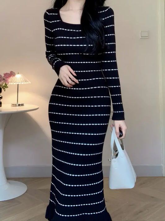 Abito in maglia con collo quadrato e bordo arricciato - Vestibilità lunga