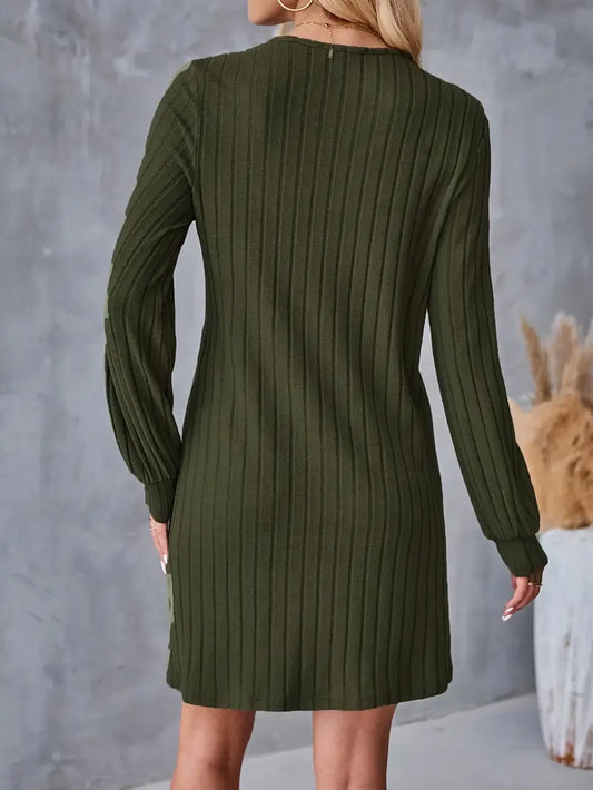 Abito elegante a maniche lunghe - Design semplice a maglia, collo rotondo