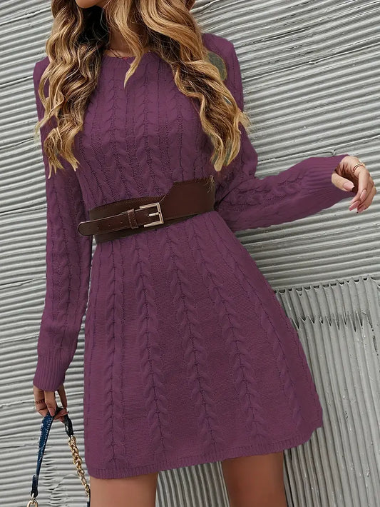 Abito in maglia a cavi - maniche lunghe, collo rotondo, look casual in maglia