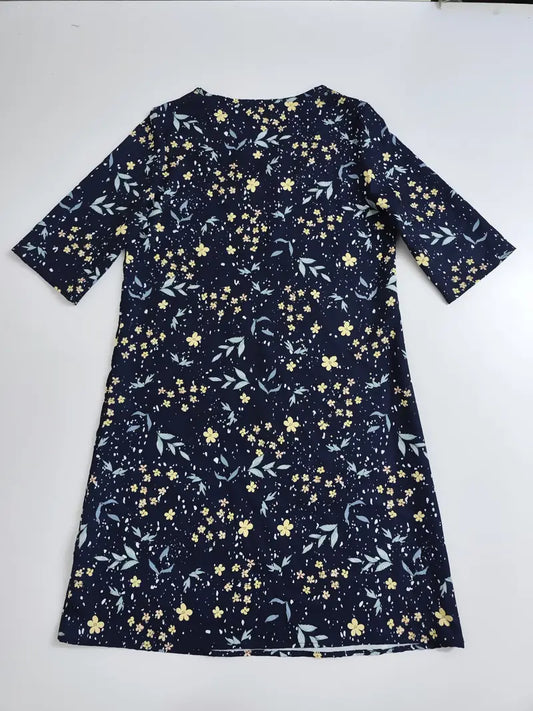 Abito sciolto con scollo a V e stampa floreale, abito casual con mezze maniche