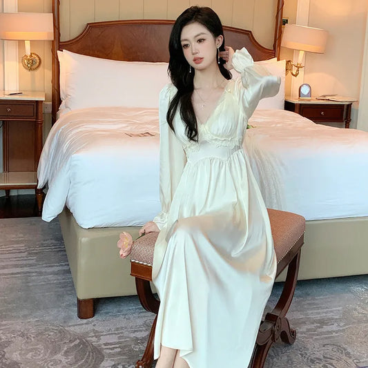 Abito con maniche a lanterna, scollo a cuore e spacco sull'orlo