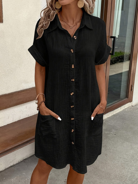 Abito estivo da donna - Abito tunica leggero con colletto e tasche