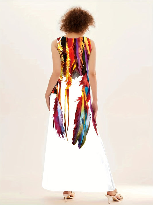 Maxi abito senza maniche con stampa floreale e scollo a intaglio