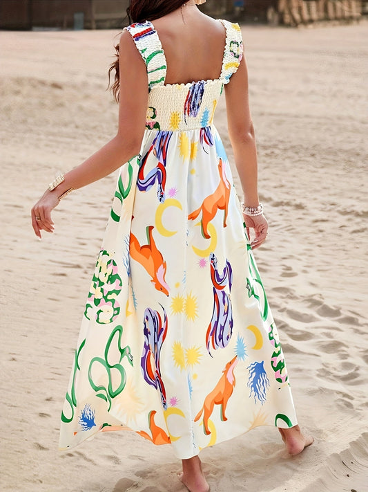 Abito estivo con stampa all-over Abito senza maniche con scollo a V e rouches