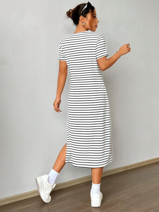 Abito estivo a righe bianche e nere, casual a maniche corte
