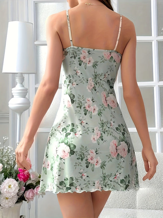 Abito da casa estivo a fiori con volant senza schienale Confortevole