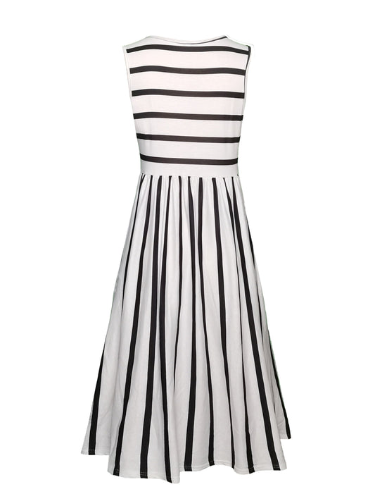 Abito a canotta a righe da donna - Abito a girocollo senza maniche