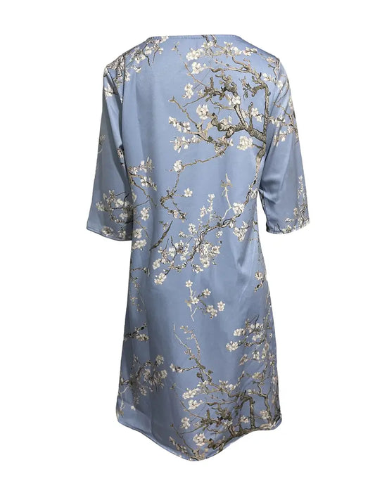 Abito con scollo a V e stampa vegetale, maniche a 3/4 Taglio ampio