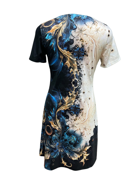 Abito con stampa tridimensionale e scollo ad aletta, abito estivo elegante per il tempo libero e le feste