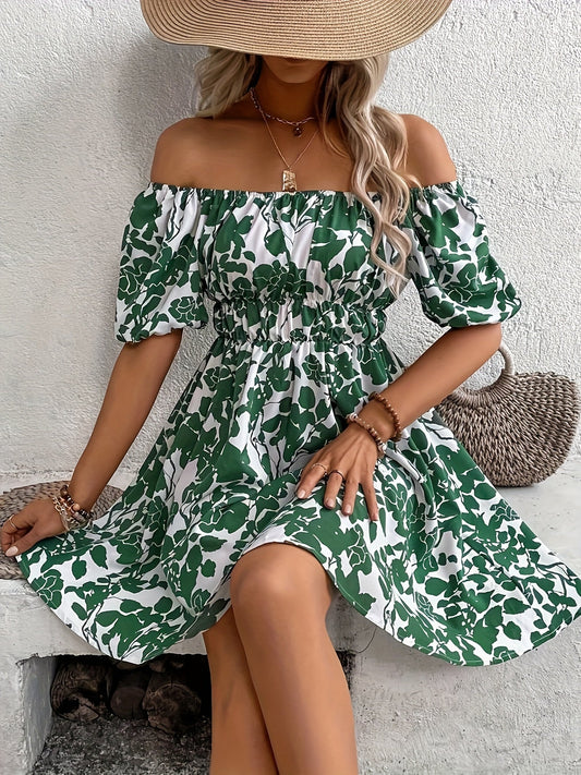 Abito da donna con stampa floreale pavone - Boho mezza manica, primavera e estate
