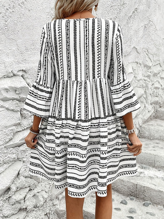 Abito estivo a righe - Abito lungo fino al ginocchio con scollo a V e maniche a 3/4