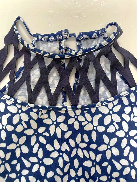Abito estivo con stampa floreale - Abito senza maniche con scollo a V e linea ad A
