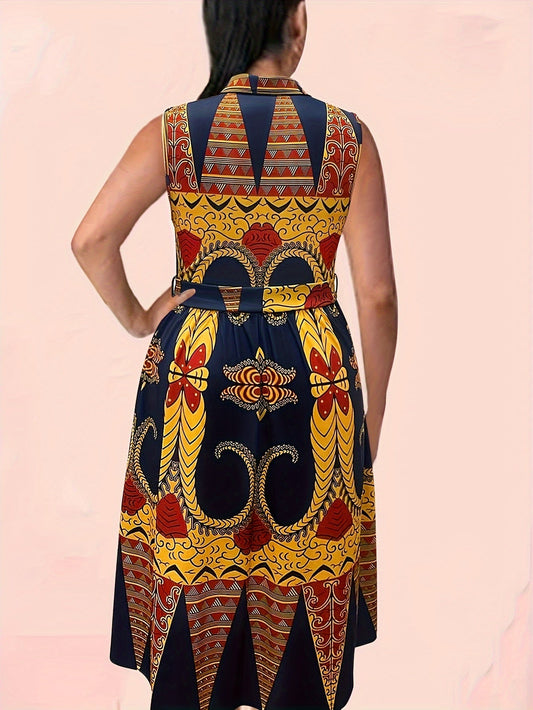 Abito floreale plus size da donna - abbottonatura, senza maniche, estate e vacanze