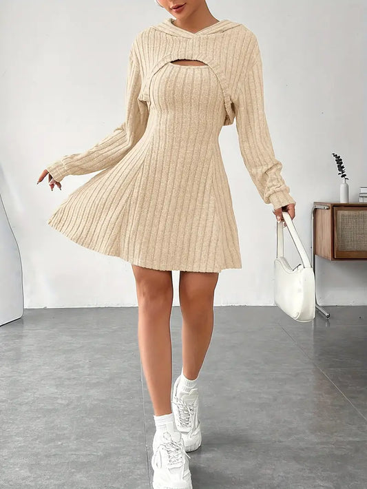 Completo con abito a coste da donna - Felpa con cappuccio a maniche lunghe e abito a trapezio