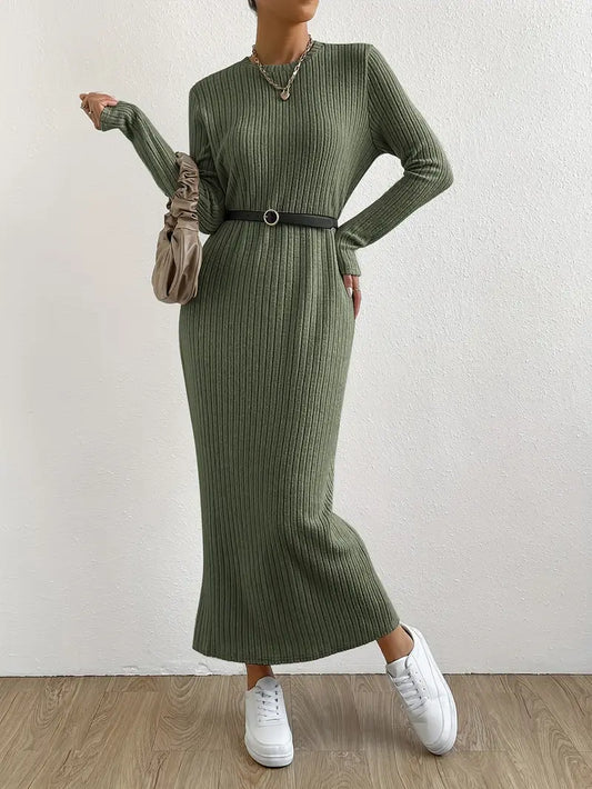 Maxi abito a maniche lunghe - Monocolore, Elegante design a girocollo