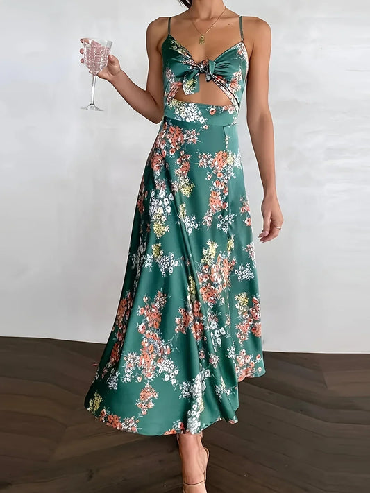 Maxi abito senza maniche con stampa floreale e scollo a intaglio