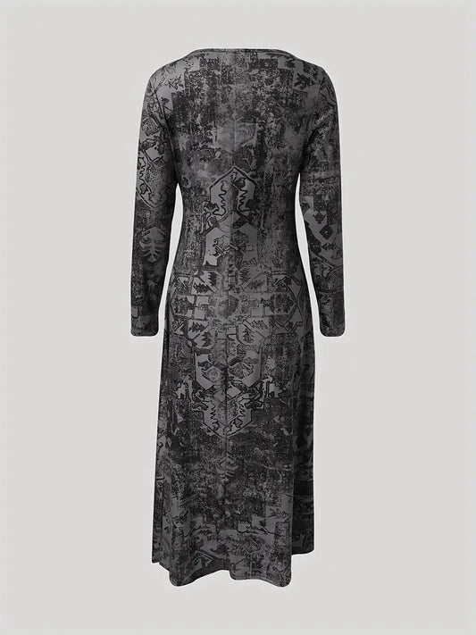 Abito bohémien a maniche lunghe, abito lungo con scollo rotondo per autunno e inverno