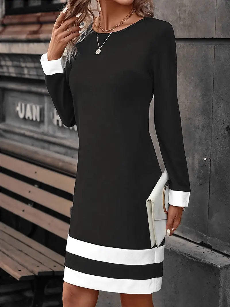 Questo abito a righe con scollo rotondo è una combinazione perfetta di raffinatezza e stile. Le maniche lunghe e la vestibilità slim creano una silhouette adatta a ogni tipo di fisico. La classica scollatura rotonda gli conferisce un tocco senza tempo e lo rende adatto a diverse occasioni. L'abito è realizzato in tessuto morbido e traspirante per garantire comfort ed eleganza. Da indossare con i tacchi per un evento formale o con gli stivali per un'uscita casual, può essere abbinato senza problemi a diversi look. Capo versatile, questo abito diventerà sicuramente il preferito per uno stile senza sforzo.