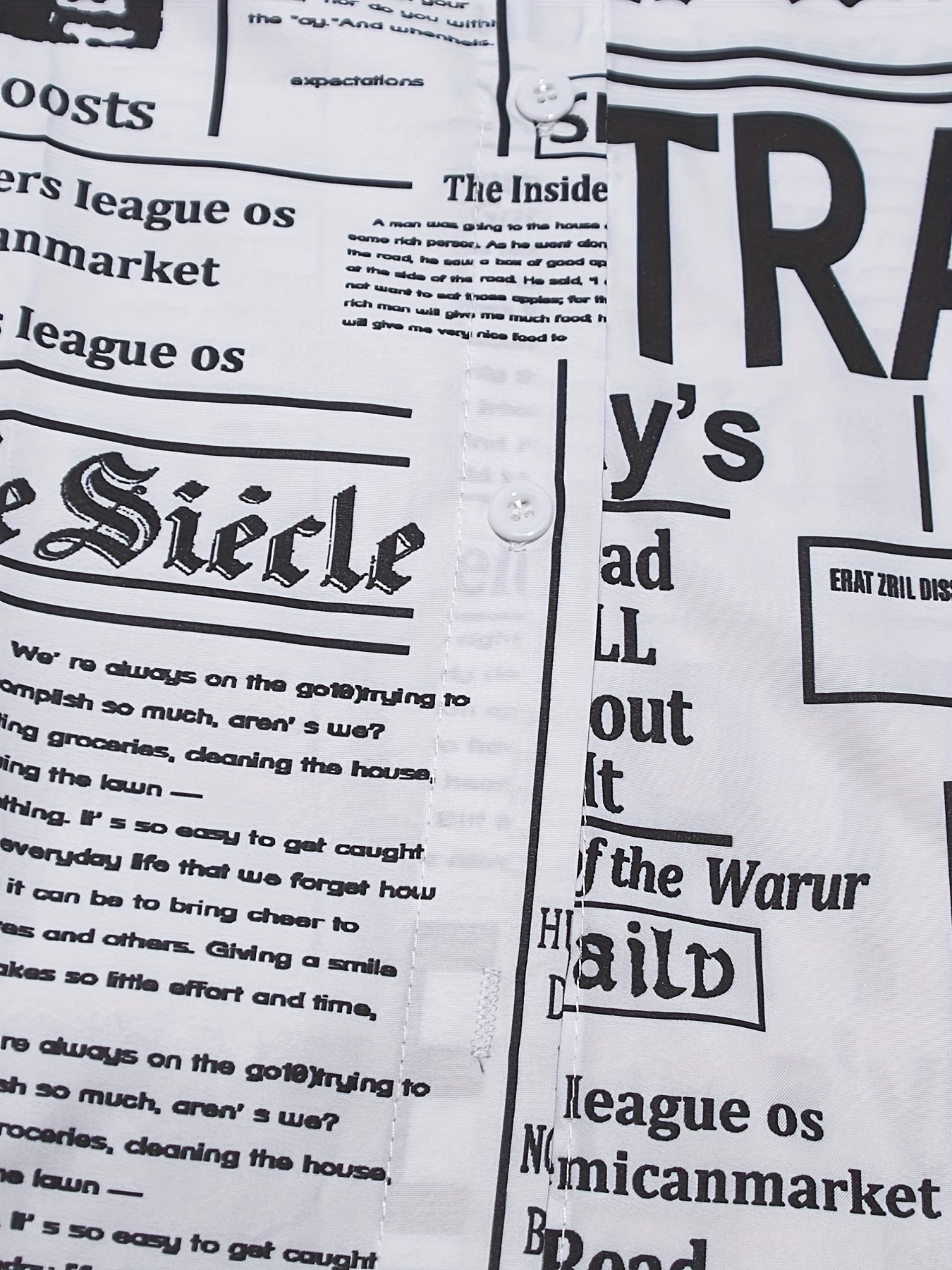 Abito camicia con stampa giornale Abito casual a maniche lunghe con abbottonatura