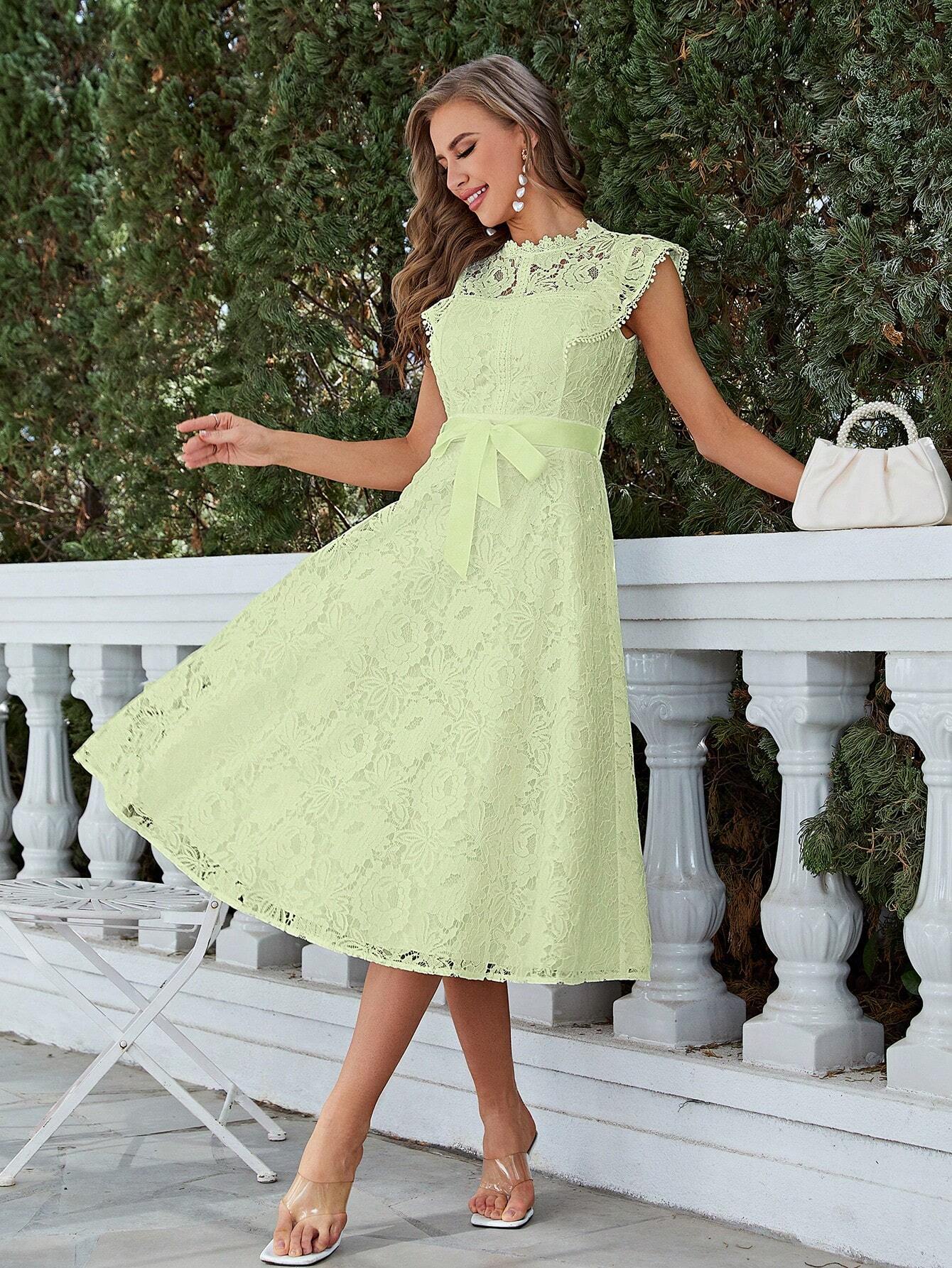Questo elegante abito corto con eleganti maniche fluide e delicati dettagli in pizzo offre il perfetto mix di stile e comfort. Il tessuto leggero garantisce una vestibilità comoda, rendendolo ideale per occasioni casual e semi-formali. Il design elegante e i delicati dettagli in pizzo aggiungono un tocco di raffinatezza al tuo look. Questo abito versatile può essere indossato in modo elegante o casual ed è un capo essenziale del guardaroba. Abbraccia l'eleganza disinvolta con questo splendido abito corto.