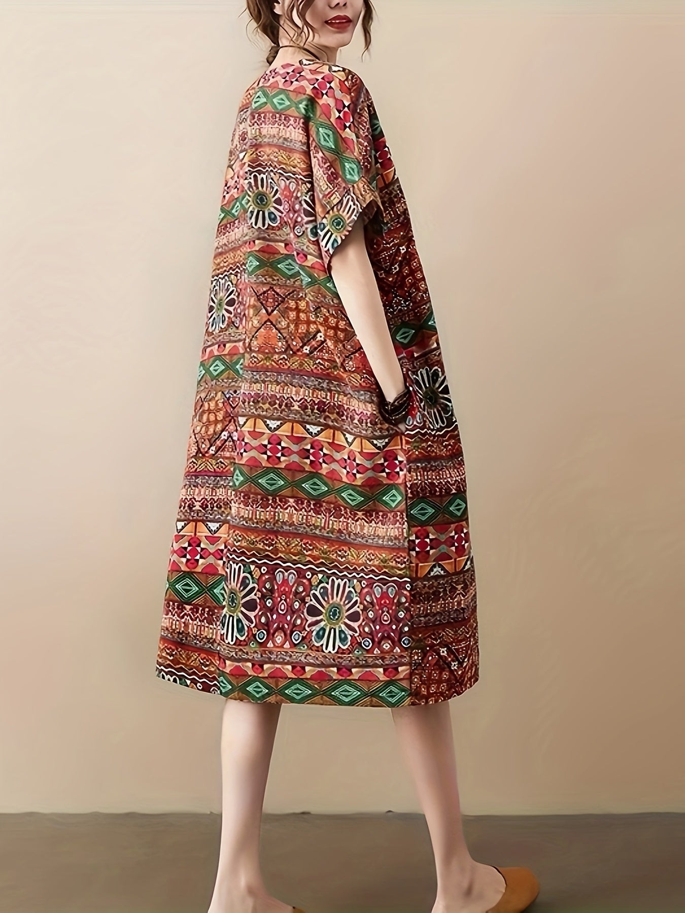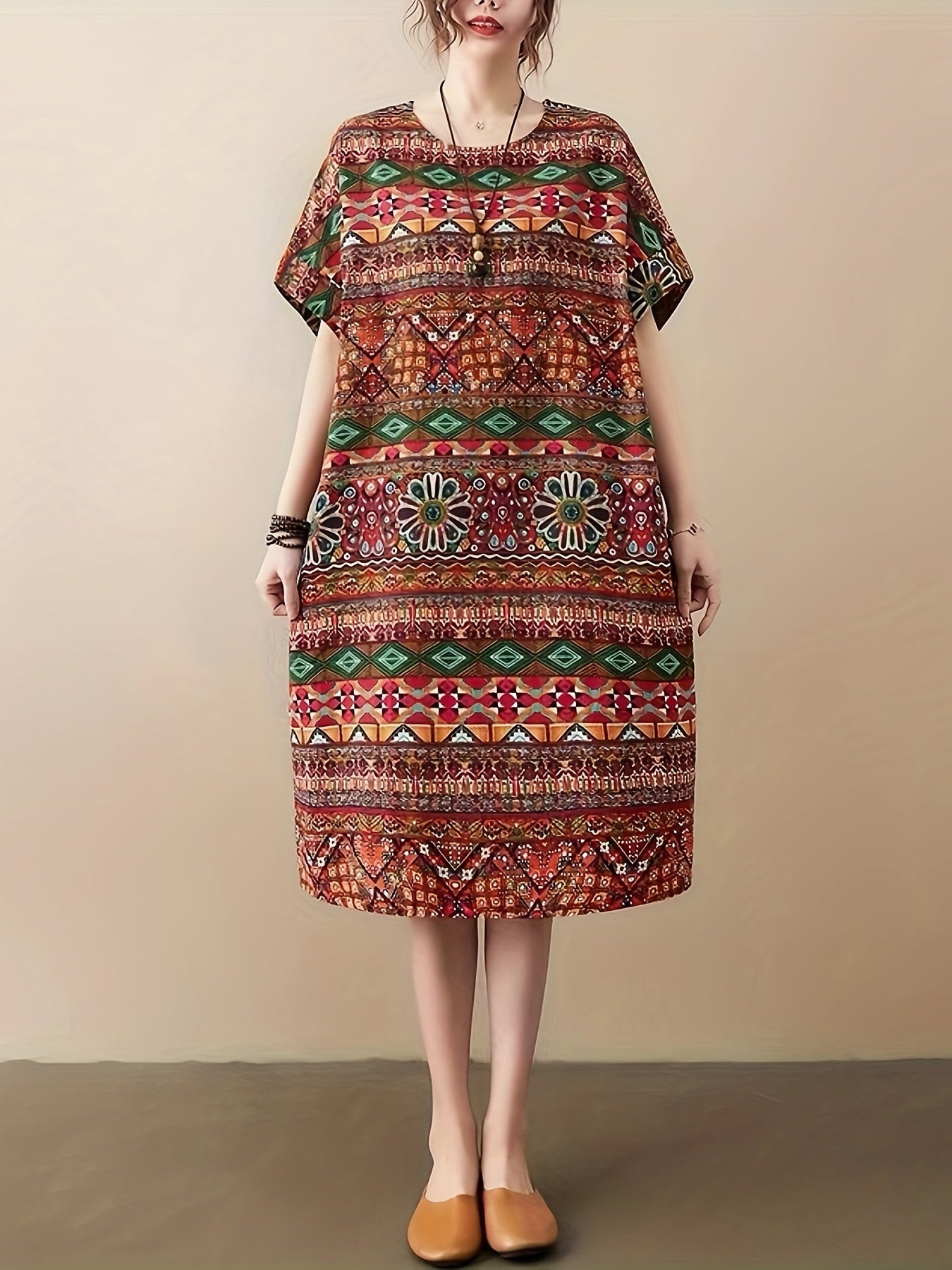 Questo arioso abito in lino in taglie forti offre il massimo comfort per le giornate calde. La fantasia floreale femminile gli conferisce un look estivo, mentre la vestibilità ampia lo rende comodo da indossare. Le pratiche tasche rendono l'abito funzionale e adatto all'uso quotidiano. Grazie al misto lino traspirante, è ideale per il tempo libero, le vacanze o le passeggiate rilassate. Da indossare con disinvoltura con i sandali o in modo elegante con gli accessori, questo abito è un compagno estivo versatile.