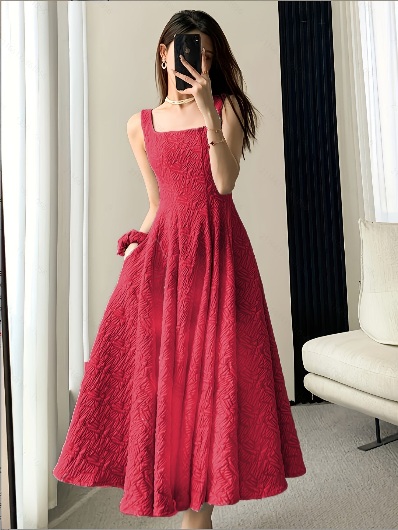 Completate il vostro guardaroba estivo con questo elegante abito con scollo quadrato e fondo svasato. Realizzato in poliestere leggero, offre comfort e stile nelle giornate più calde. Perfetto per occasioni casual e speciali.