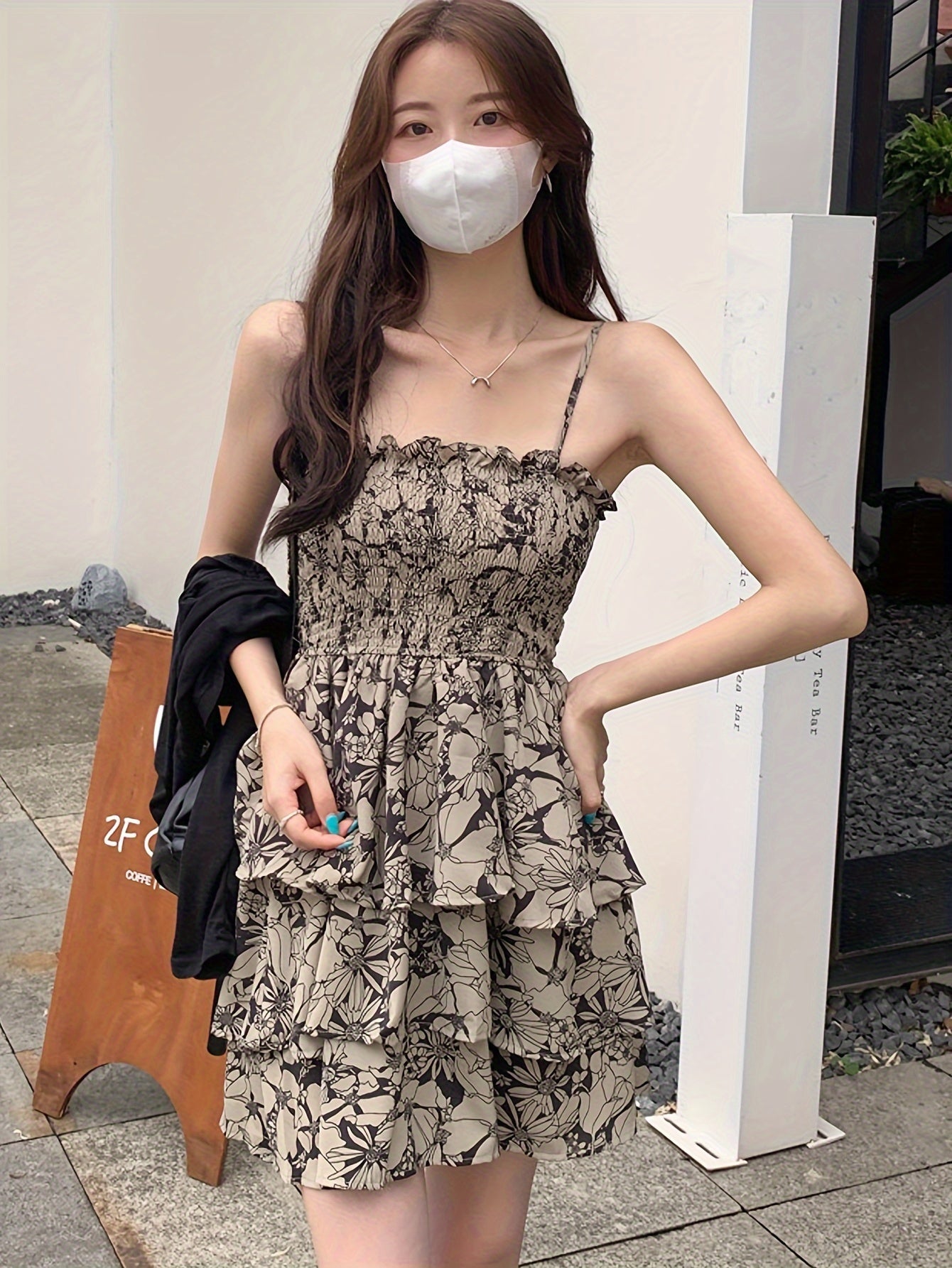 Abito estivo con motivo floreale - Abito a tracolla arioso, design slingback