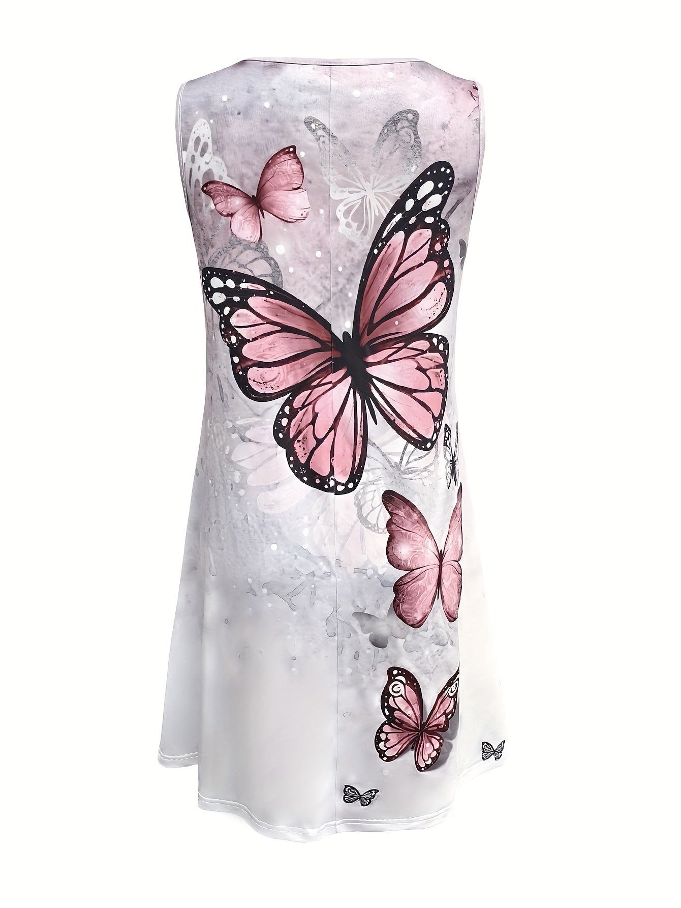 Abito estivo con stampa a farfalla - Senza maniche, Scollo rotondo, Sciolto e arioso