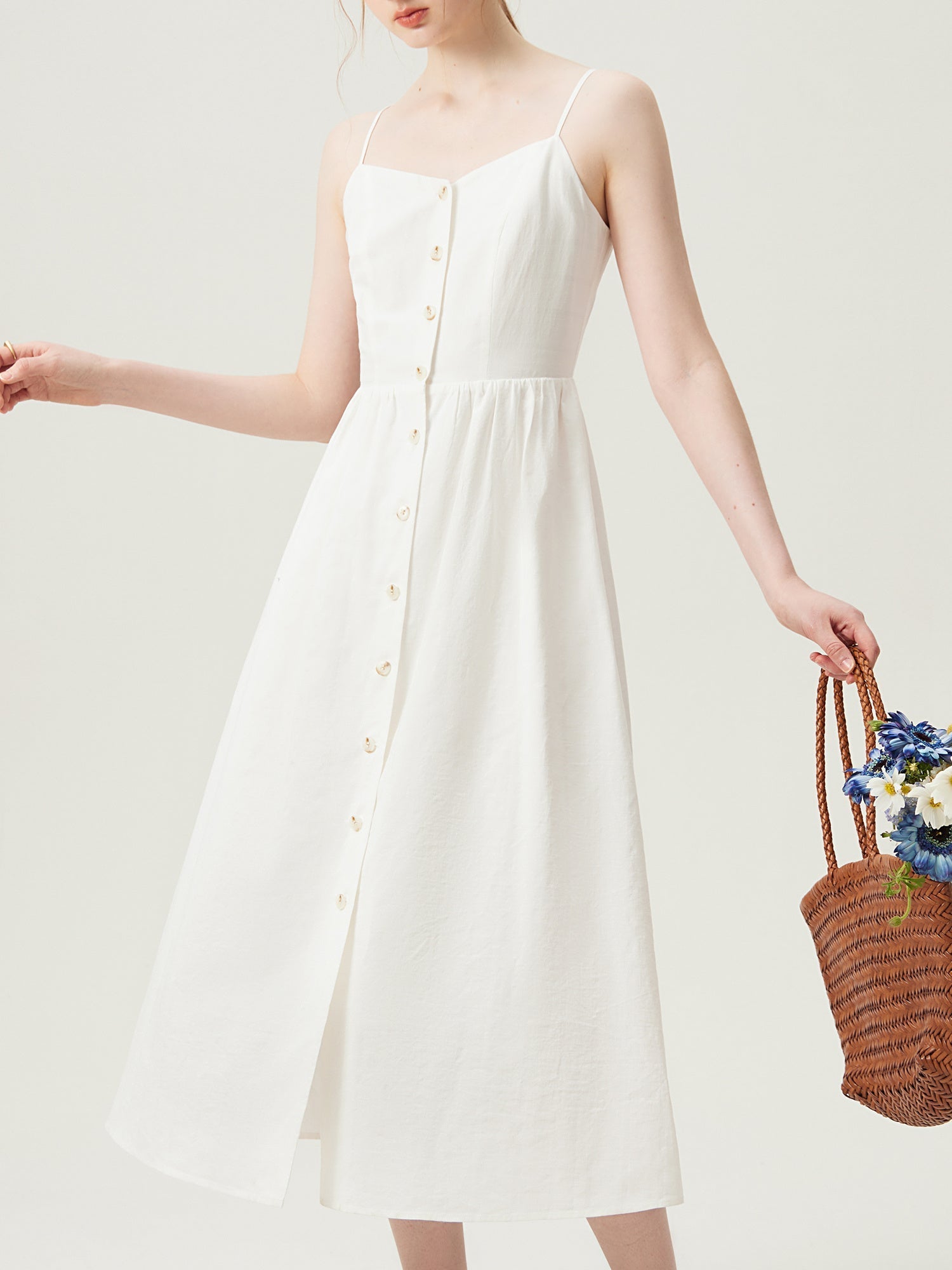 Abito estivo da donna - Abito midi senza maniche, misto lino, abbottonato