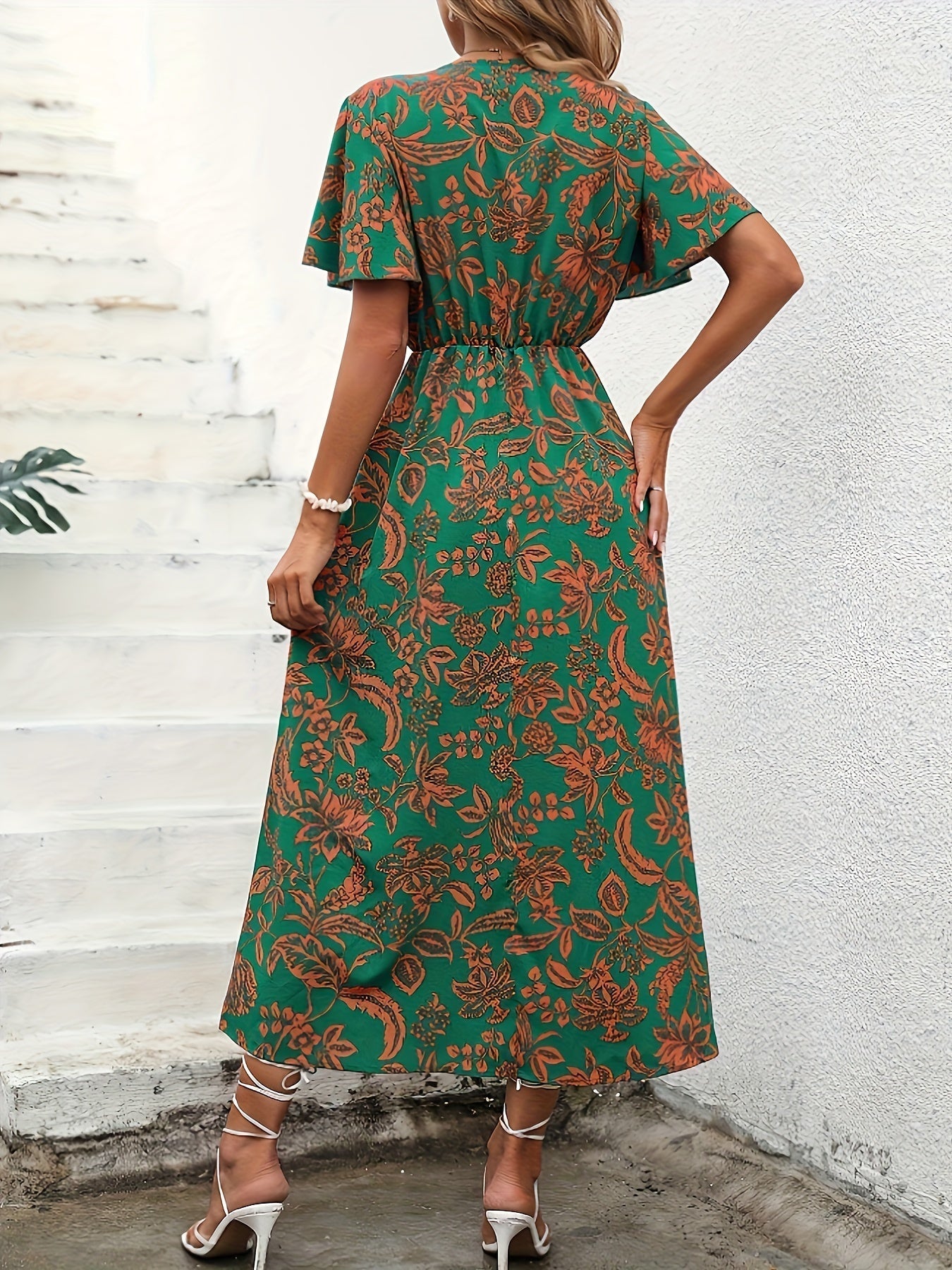 Abito floreale da donna Scollo a V e maniche con spacchi e volant