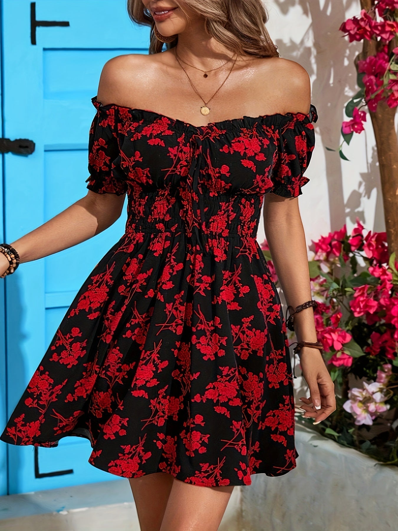 Questo splendido abito floreale unisce eleganza e leggerezza. La lusinghiera silhouette A-line e l'arricciatura in vita assicurano una vestibilità femminile, mentre la scollatura quadrata aggiunge un tocco di stile al look. Perfetto per le giornate primaverili ed estive, da indossare tutti i giorni, per una passeggiata in città o per le occasioni speciali.