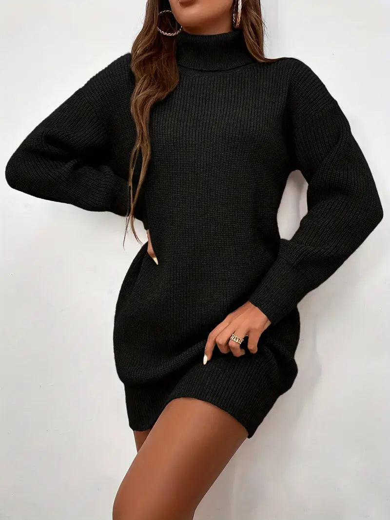 Abito in maglia monocolore a maniche lunghe e collo alto