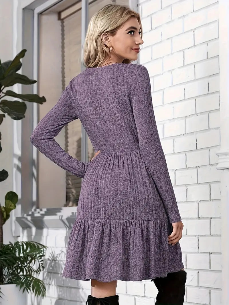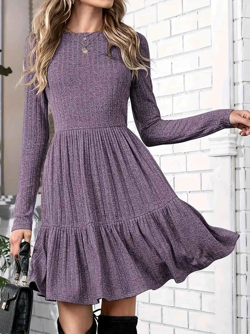Questo abito A-line con scollo rotondo e orlo increspato combina eleganza e comfort per ogni occasione. Con il suo classico scollo rotondo e le maniche lunghe, offre un look versatile e senza tempo. L'orlo increspato aggiunge un tocco di femminilità e crea una silhouette ad A lusinghiera. Realizzato in tessuto morbido e traspirante, garantisce comfort e stile per tutto il giorno. Abbinatelo a tacchi a spillo o a stivali per un look elegante al lavoro, alle feste o alle uscite casual. Un must del vostro guardaroba per un'eleganza senza sforzo.