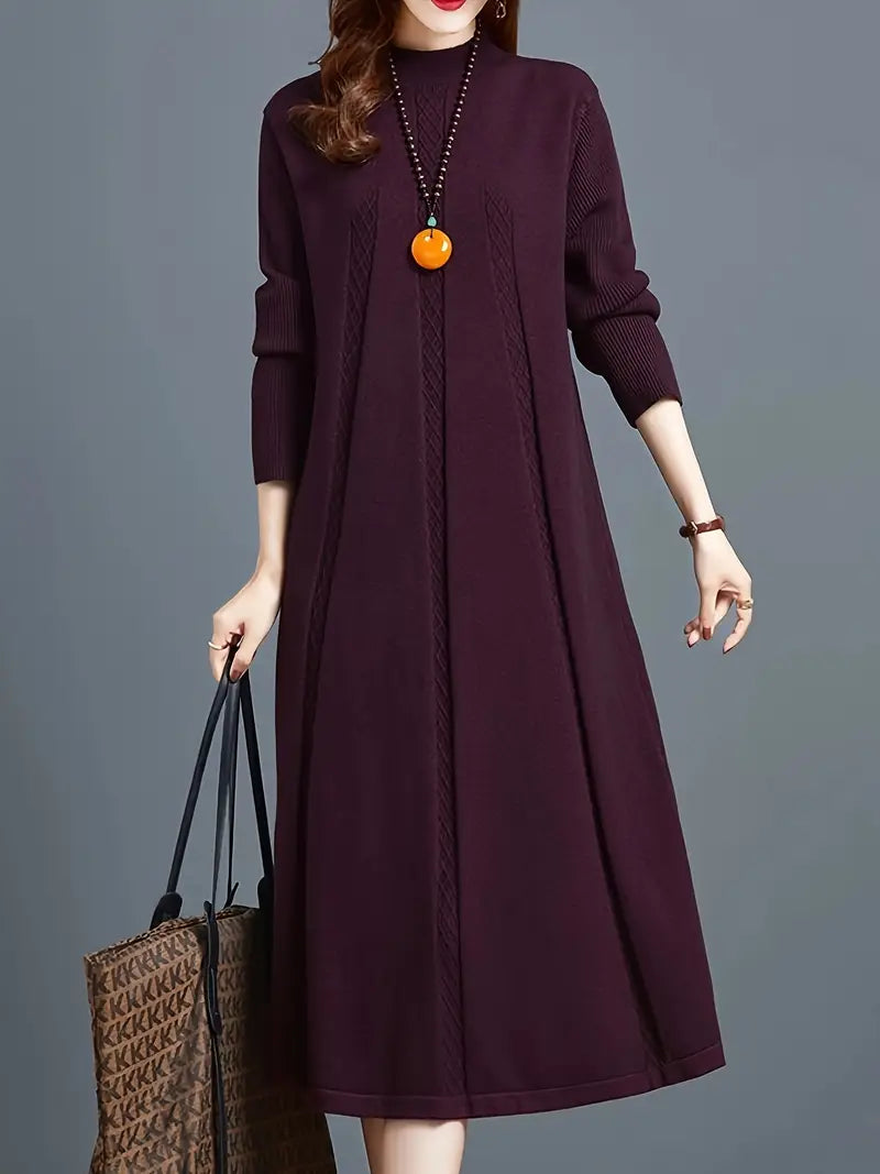 Scoprite il comfort e l'eleganza di questo accogliente abito midi da donna in maglia.