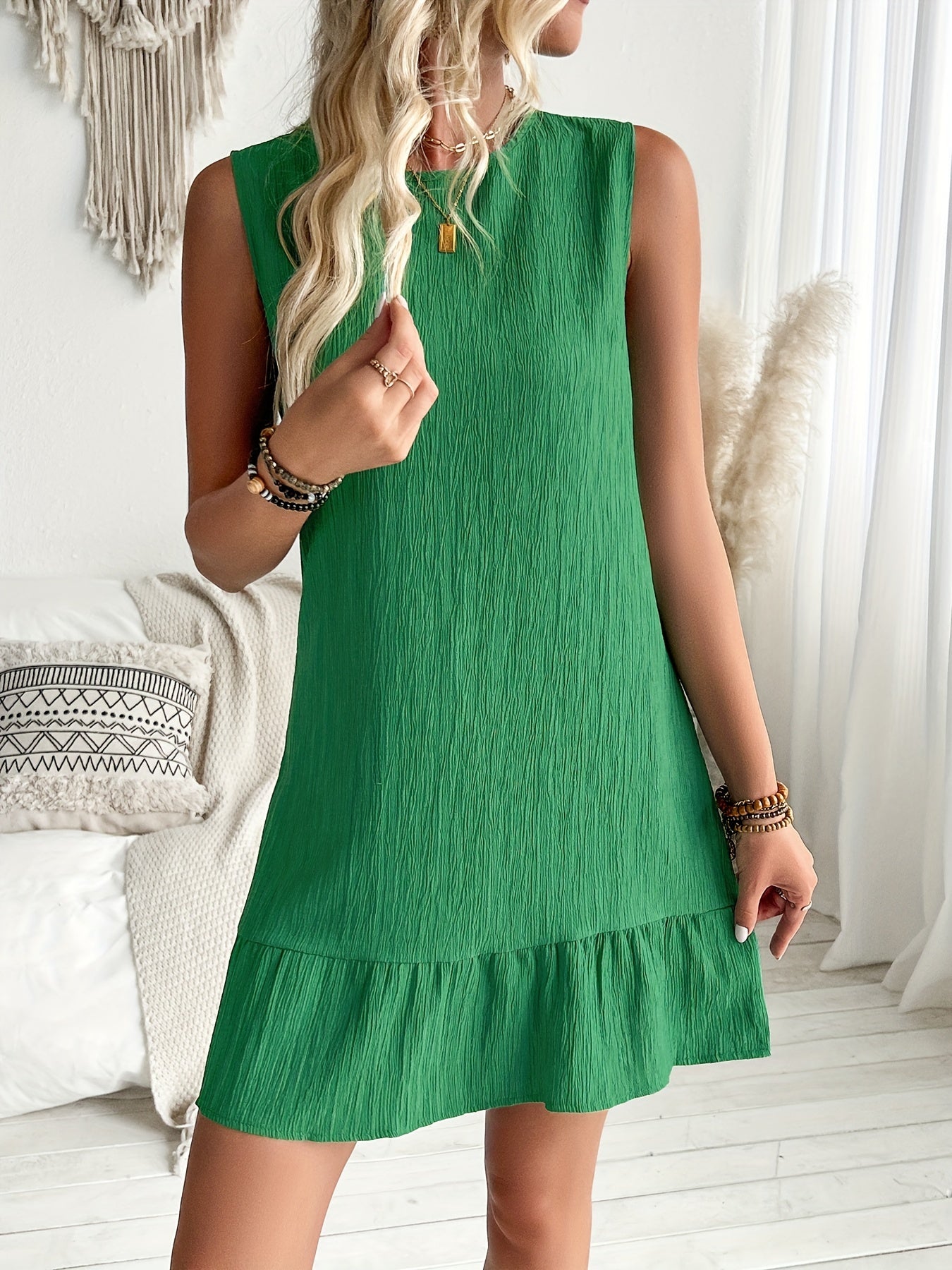 - Stile: elegante abito a canotta con volant per un look femminile.