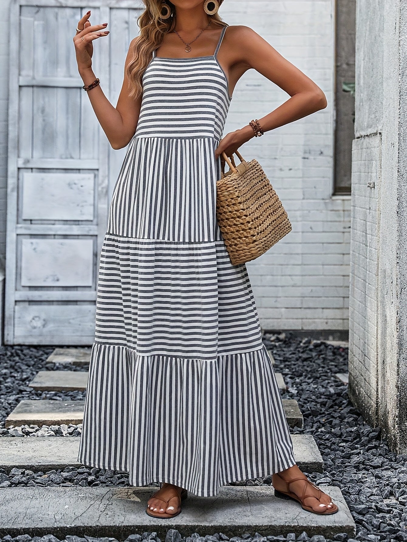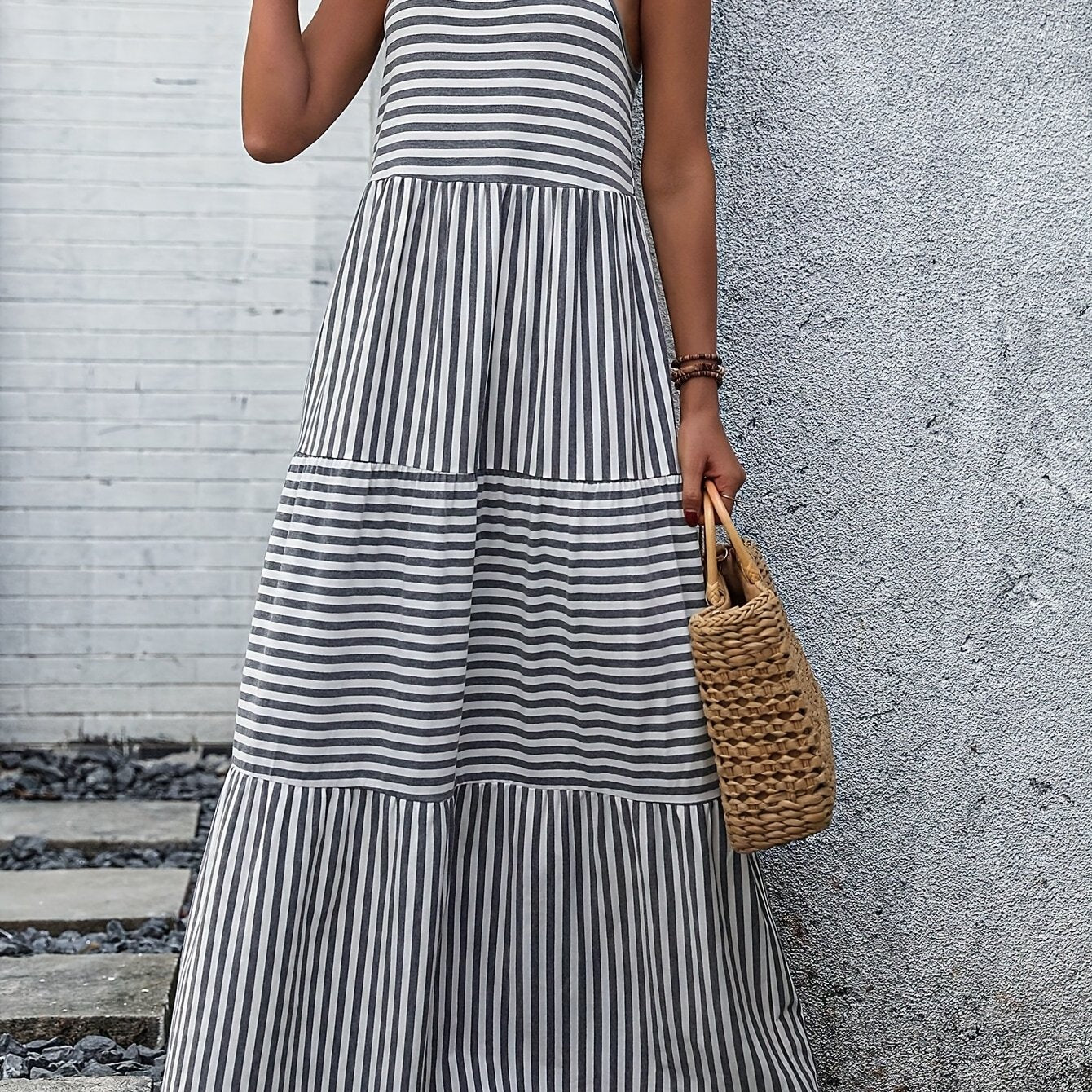 Questo elegante e comodo maxi abito a righe bianche e nere è la scelta perfetta per le giornate estive. Realizzato in poliestere leggero, è perfetto per le passeggiate in spiaggia e le uscite casual.